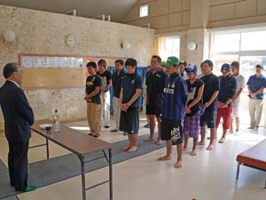 同施設は今年度、町が直接運営する事になり、開園前に町関係者と監視員が出席して安全を祈願。秋武喜一郎教育長は「事故の無いよう十分に監視し、自分たちの体調にも気を配りながら管理運営をしましょう」と呼びかけました。
