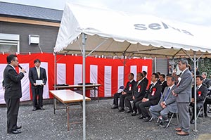 式典で高岡秀規町長は「成功事例を作ることが大事。アナログ(特産品製造)とデジタル(ICTの利活用)のコラボで、地域活性化につなげてほしい」と激励しました。