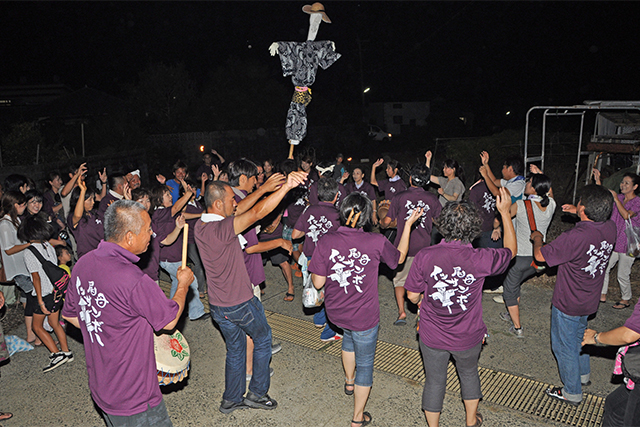 徳之島町の尾母集落で9月20日、伝統行事「アキムチ」が行われました。「イッサンボー」と呼ばれるかかしに似た人形を先頭に、たいまつを掲げて大勢の住民が集落内を回り、にぎやかな踊りを披露しました。